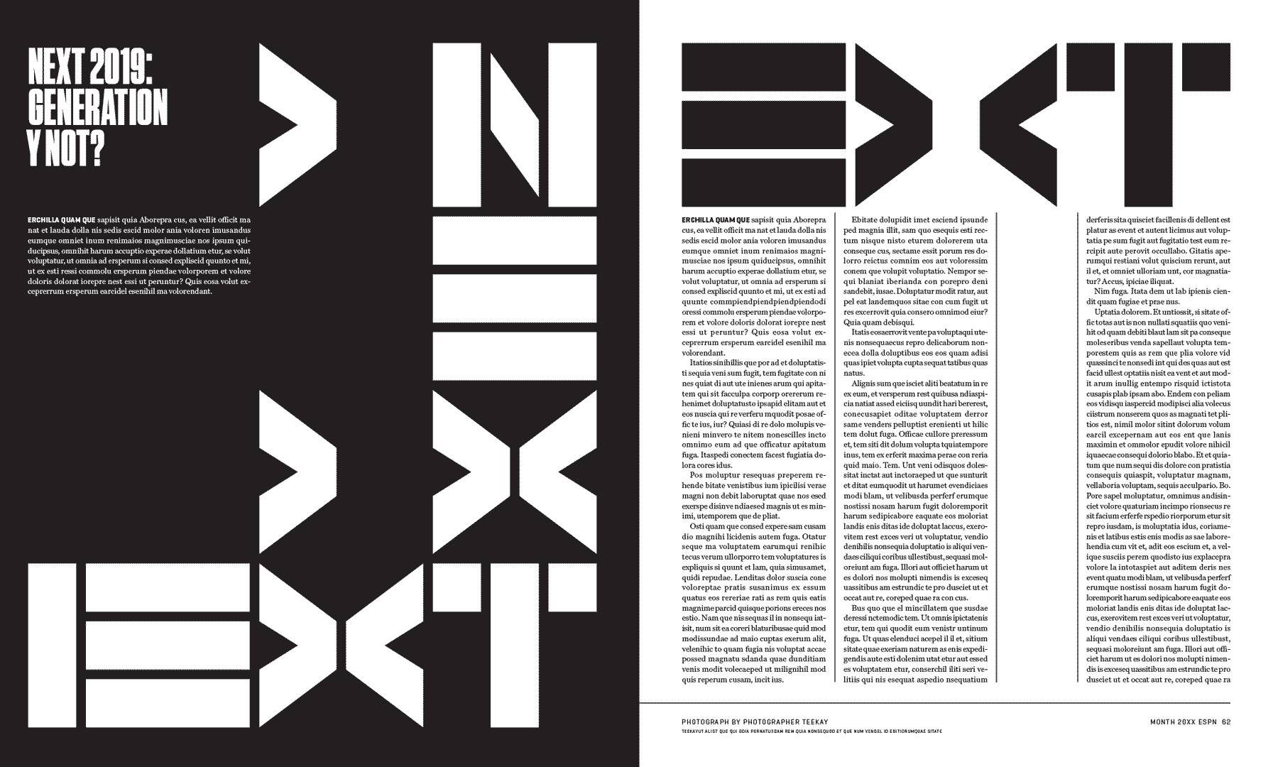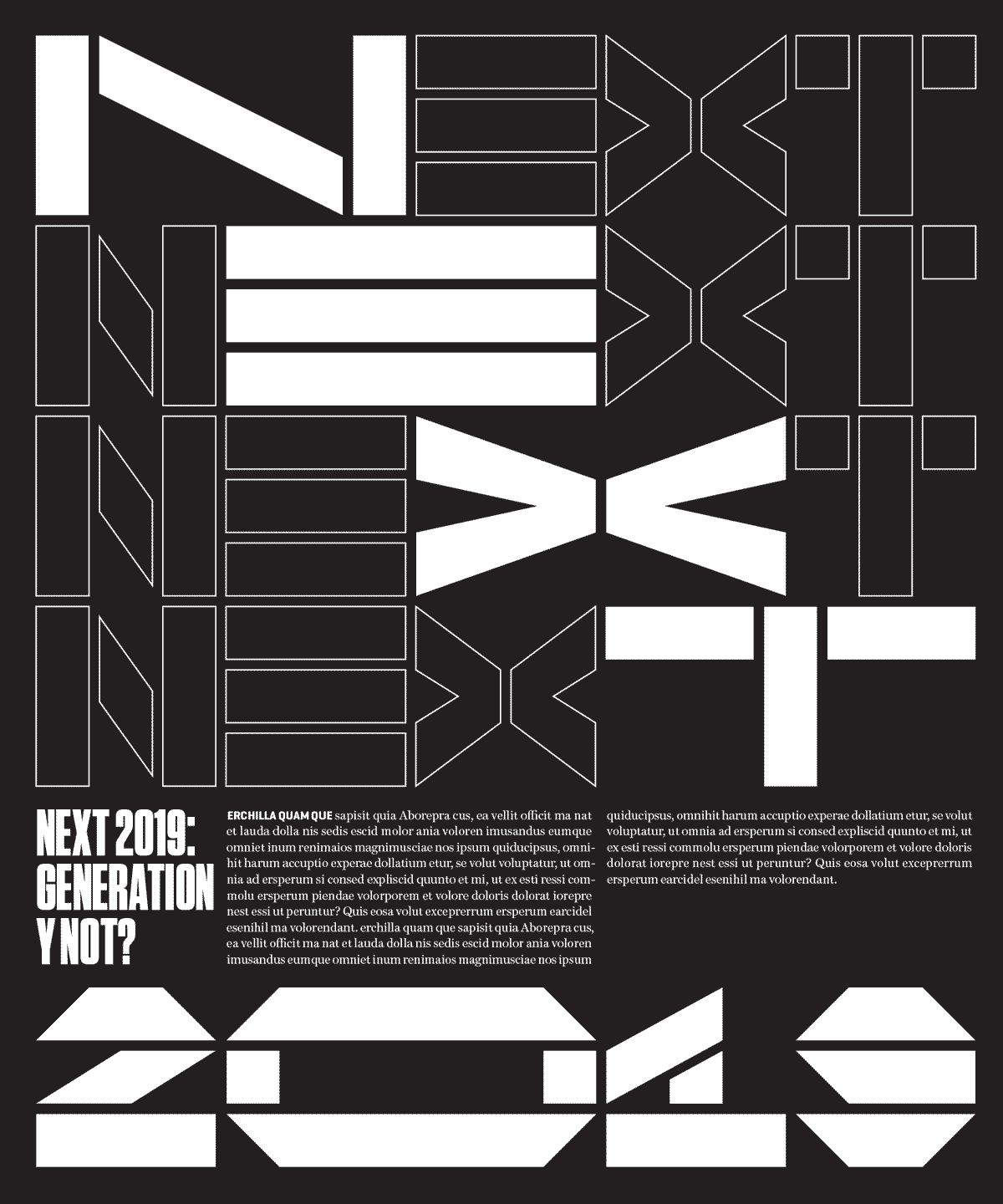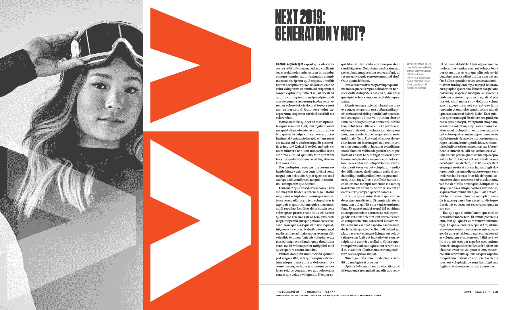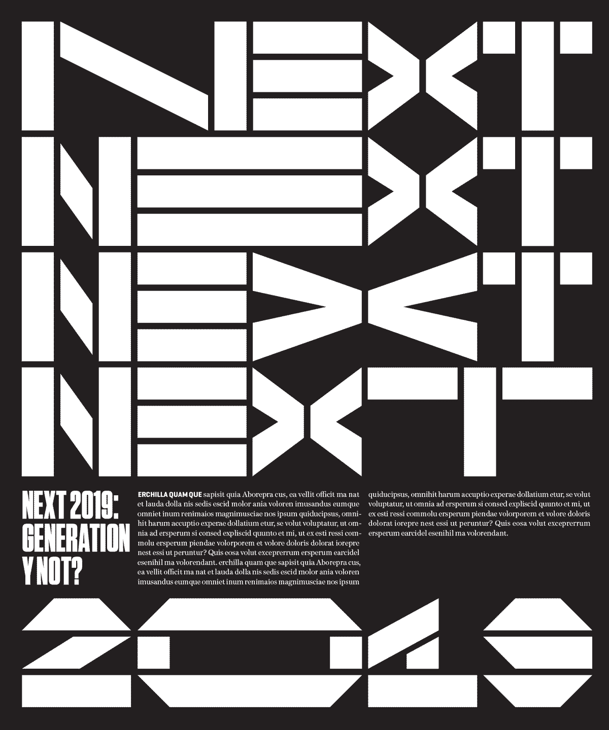 TPN has been commissioned again by ESPN. This time we designed a font with two different width for the NEXT section. Every year since 1998, ESPN The Magazine has recognized an elite group of emerging athletes to watch in the year ahead. ESPN calls these athletes NEXT. They are competitors not only on the cusp of stardom, but on the verge of transcending their sports. NEXT is what happens when the hype is real. ESPN The Magazine is a monthly sports magazine published by the ESPN sports network in Bristol, Connecticut, in the United States. The magazine sells more than 2 million copies every month.