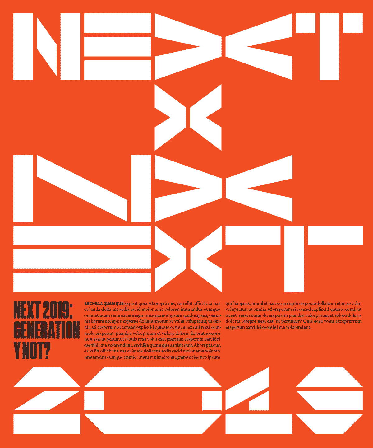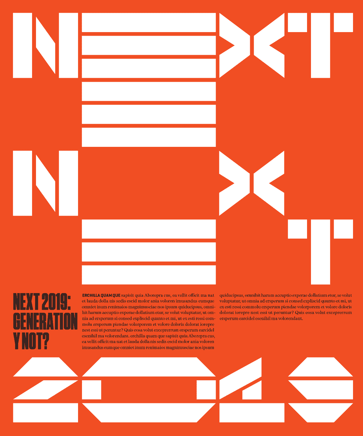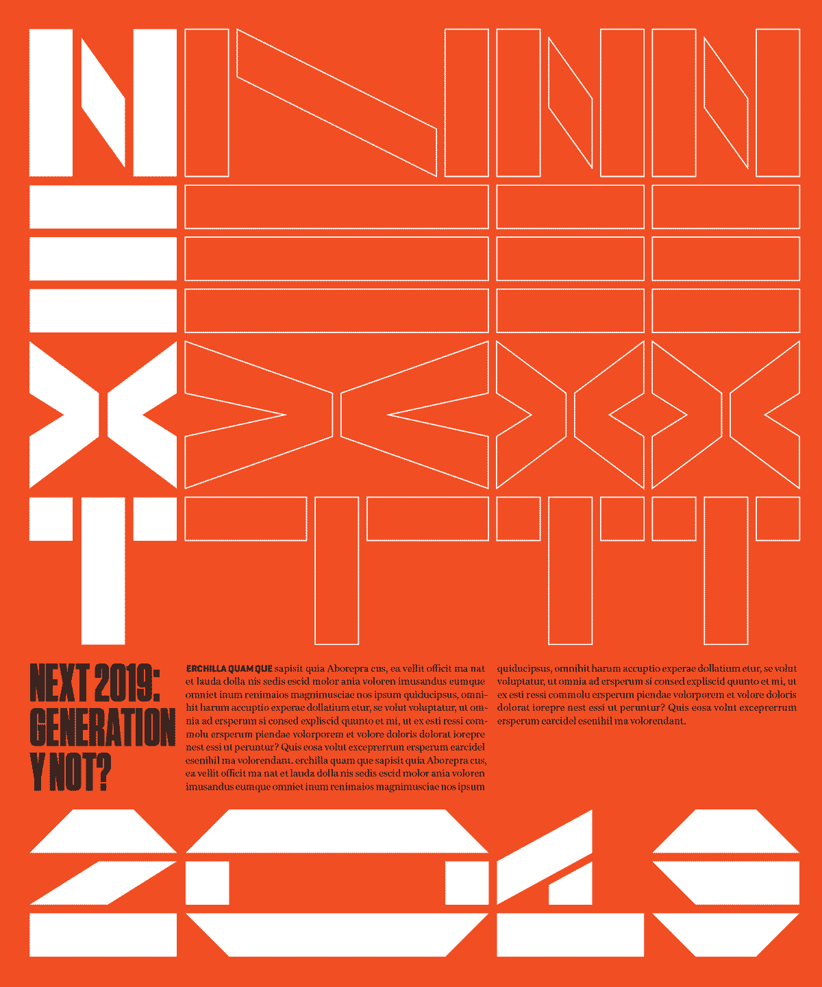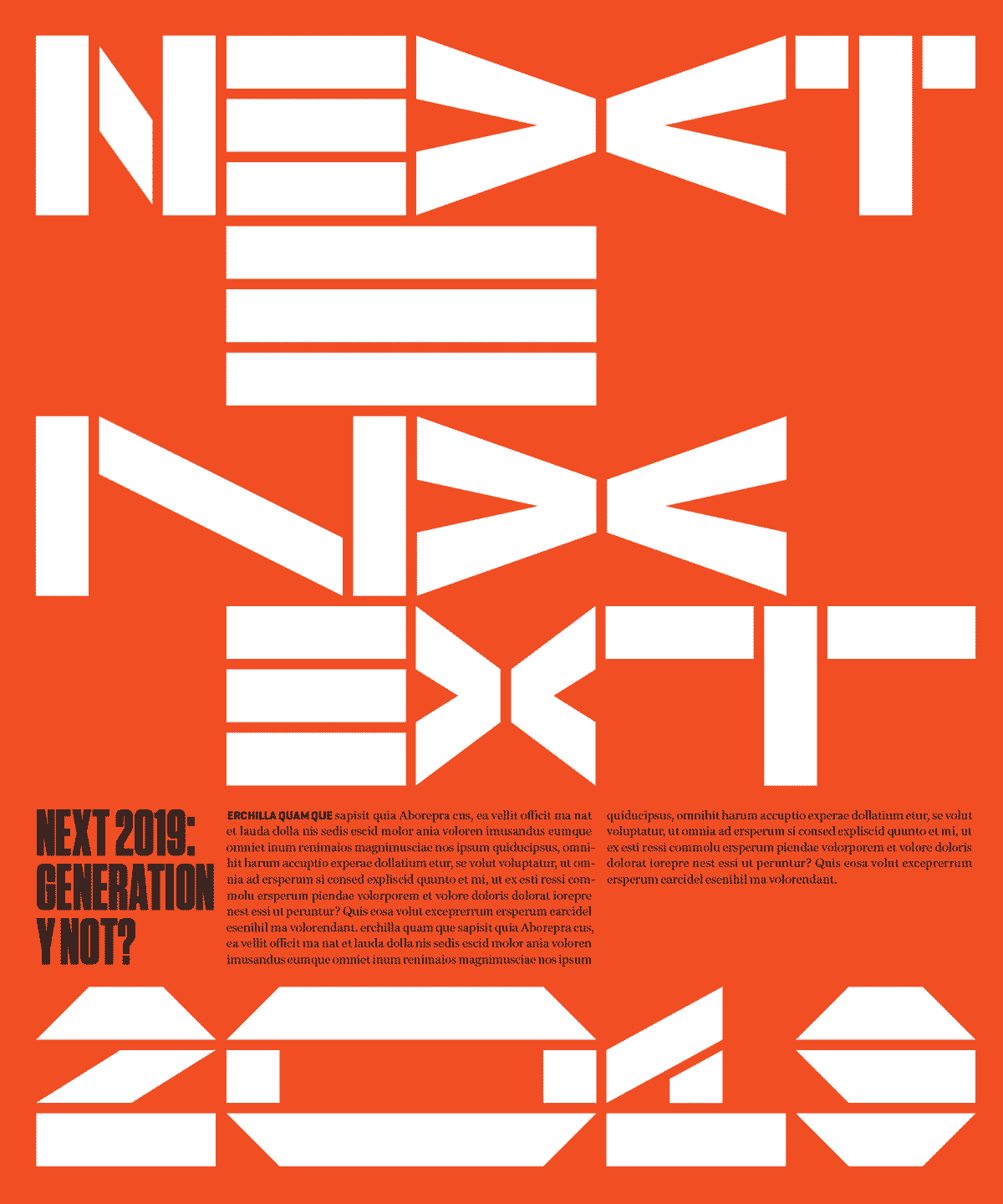 TPN has been commissioned again by ESPN. This time we designed a font with two different width for the NEXT section. Every year since 1998, ESPN The Magazine has recognized an elite group of emerging athletes to watch in the year ahead. ESPN calls these athletes NEXT. They are competitors not only on the cusp of stardom, but on the verge of transcending their sports. NEXT is what happens when the hype is real. ESPN The Magazine is a monthly sports magazine published by the ESPN sports network in Bristol, Connecticut, in the United States. The magazine sells more than 2 million copies every month.