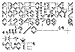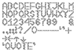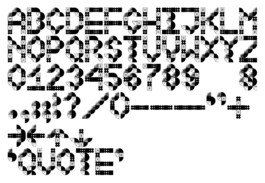 The images placed inside of the modules can be abstract or concrete, as long as each family of images contain the four quarters of a circle and a square element to construct all the glyphs of the font.